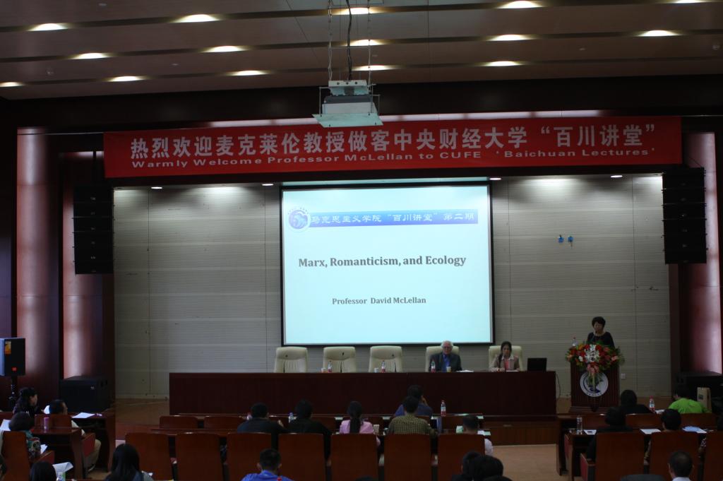 9月25日下午,公司best365足球官网主办的“百川讲堂”活动第二讲在学术会堂202隆重举行。这期有幸邀请到世界著名马克思主义学者David McLellan教授做报告,题为“马克思、浪漫主义和生态学”。报告由best365足球官网经理冯秀军教授担任主持,副经理陈文娟副教授担任翻译,best365足球官网全体师生及公司青年马克思主义者培养班学员参加了此次报告。
