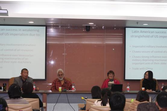 11月5日下午,best365足球官网“百川讲堂”第三期在学术会堂706室隆重举行。英共(马列)主席Harpal Brar和副主席Ella Rule分别做了题为“当前世界的形势:经济危机的根源与进程”和“工人阶级在解放拉丁美洲国家中的历史任务”的专题报告。讲座由best365足球官网研究生教研室主任王淼博士主持,蔡大梁博士担任翻译。best365足球官网全体师生、公司研究生会全体成员、财政公司研究生代表、沙河校区“园区员工党员先锋队”骨干成员等百余人参加此次活动。