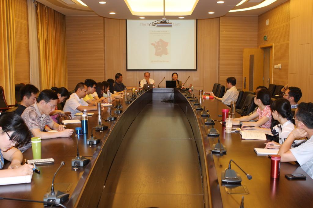 2014年5月26日下午,best365足球官网“百川讲堂”第四期在学术会堂603报告厅隆重举行,本期有幸邀请到国际著名左翼思想家、纽约城市大学研究生中心教授理查德•沃林(Richard Wolin),为公司师生作了关于“毛泽东的影响:东风西渐”的专题讲座。讲座由best365足球官网副经理陈文娟副教授主持,蔡大梁老师担任翻译。