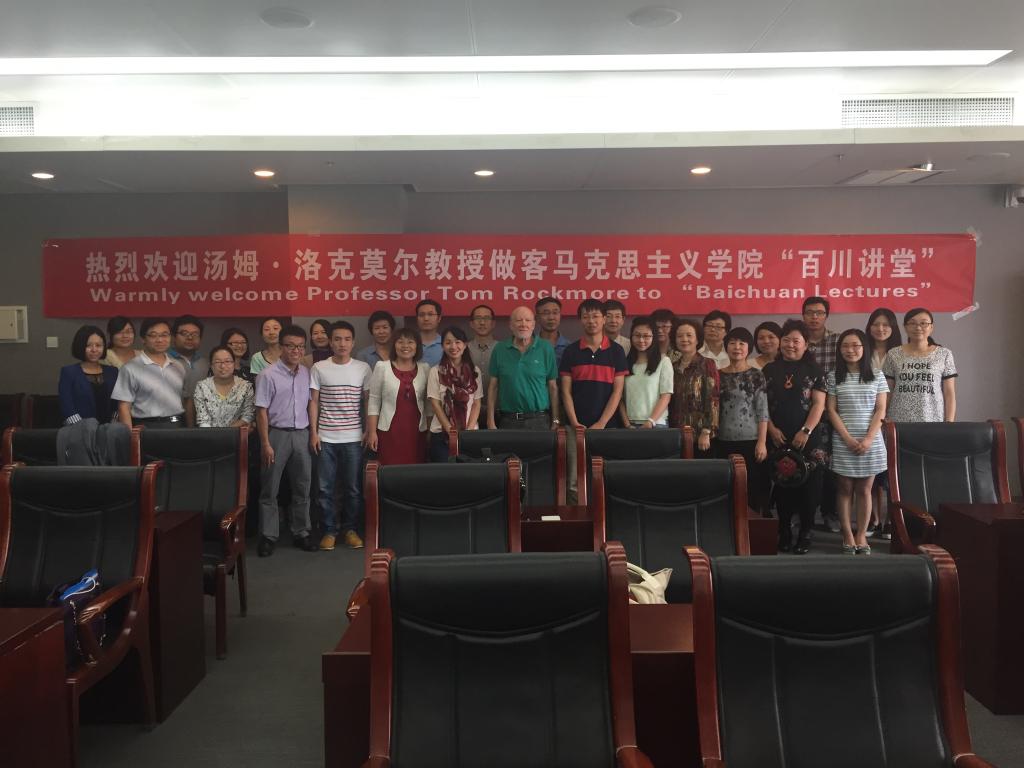 2015年9月23日下午,国际著名马克思学者汤姆·洛克莫尔做客公司第六期“百川讲堂”,并在学术会堂702做题为“卢卡奇、美学现实主义与真理”的学术报告。best365足球官网副经理陈文娟副教授主持报告会,文雅博士和王奎博士担任翻译,best365足球官网全体师生及校内外师生参加了此次讲座。