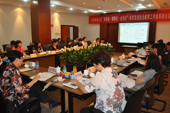 研讨会分“本科生分年级日常思想政治教育内容体系设计”和“《best365足球官网全员育人工作考核办法(试行)》的修订”两个主题。在小组讨论中,与会人员在前期研究的基础上围绕“本科生分年级日常思想政治教育内容体系设计”主题,分四个小组就“理想信念教育”、“爱国主义教育”、“公民道德教育”、“全面发展教育”“全员育人”等多个专题展开深入讨论;在集体研讨会上,各小组分别选派代表从教育时点、教育对象、教育主题、教育内容、教育载体、实施主体、保障支持、实效检验等维度,分主题对日常思想政治教育内容体系进行科学化、精致化的再设计汇报,并结合工作实际对全员育人工作考核提出了增加量化指标、强化反馈机制、加快成效转化等改进意见和建议。