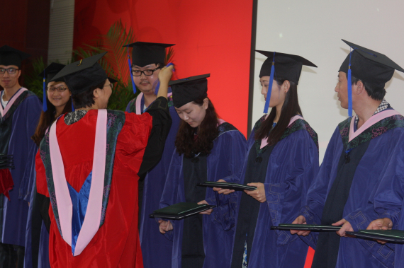 2012级博士生方来武同学代表在校生发表感言,向2013届全体毕业生送出最诚挚的祝福,表达了在校生将继续传承学兄学姐们的优良学风传统的愿望,即坚持梦想,勇担责任;心系公司,心怀感恩;以勤为径,以苦作舟,最后祝愿毕业生在未来的日子里大展宏图,祝愿公司硕果累累,再书华章。 公司副经理冯秀军教授为硕士学位获得者拨转流苏、颁发毕业证和学位证书。