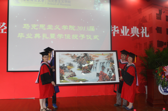 最后,学位授予仪式在师生互赠礼品的款款深情中落下帷幕。相逢又告别,归帆又离岸,既是往日欢乐的终结,又是未来幸福的开端。祝愿2013届毕业生,扬帆远航,一展宏图!