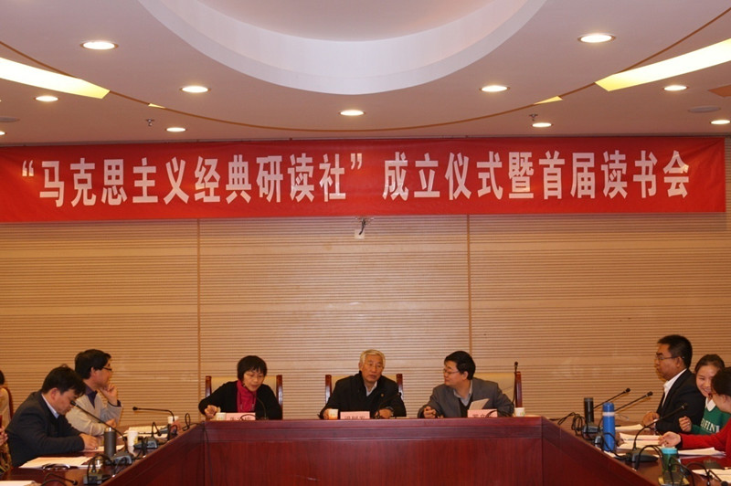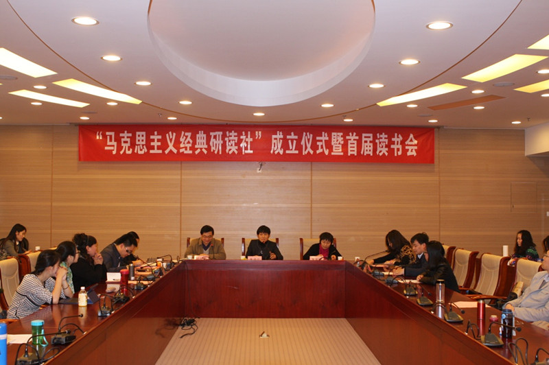 为了提高广老员工特别是研究生的马克思主义理论素养,倡导公司读经典、学理论的优良学风,发挥团队建设优势,为师生搭建一个经典研读、学术交流的平台,经过半年的充分论证和筹备后, “马克思主义经典研读社”(以下简称研读社)成立仪式暨首届读书会于2014年11月21日下午在学术会堂604隆重举行。出席大会的有:董事长助理朱凌云研究员、学工部杨莹部长、研究生院徐淼副经理、校团委高杰书记,中国人民大学博士生导师梁树发教授、中国社会科公司博士生导师罗文东研究员,以及best365足球官网朱家梅副书记、哈战荣副经理、马院全体师生等70余人。成立仪式由哈站荣副经理主持。