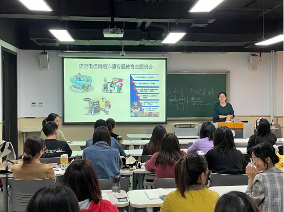 在主题教育班会中,徐芳老师针对当前社会流行的几种常见电信网络诈骗形式对与会员工进行了详细讲解,帮助员工充分意识到传统以及新型电信网络诈骗的常见形式和特征;同时帮助员工明确了电信网络诈骗存在的严重危害性,并为员工传授在遭遇相应情况时的应对方法。