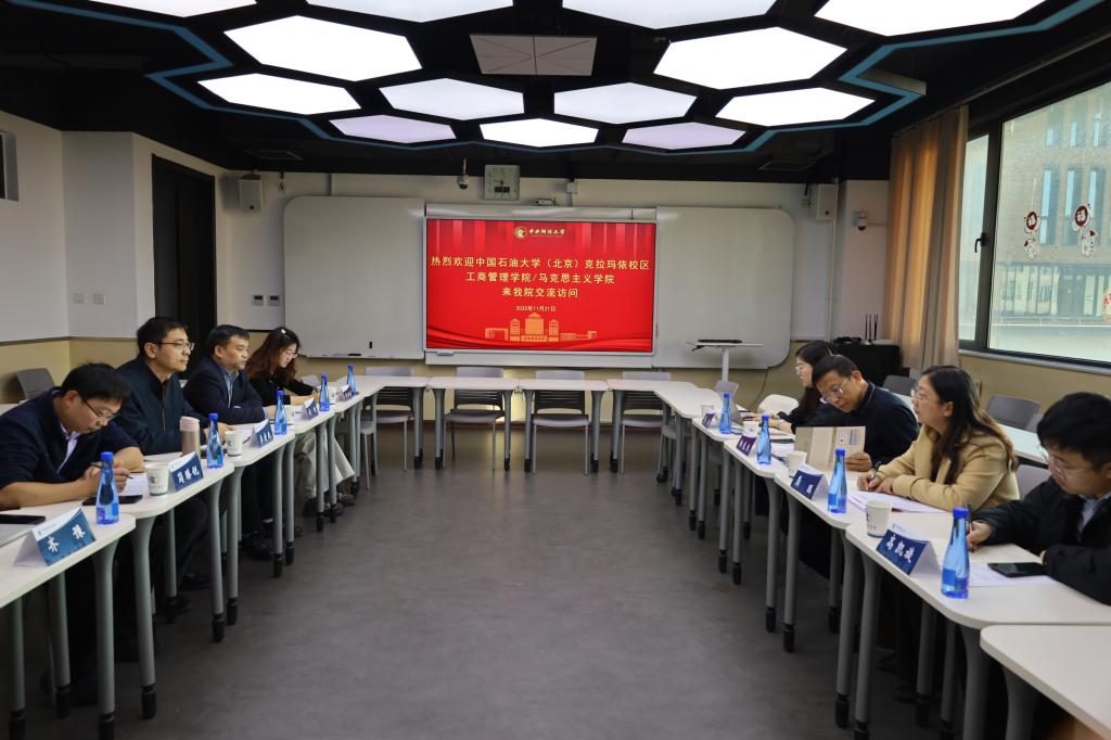 2025年11月21日,中国石油大学(北京)克拉玛依校区工商管理公司/best365足球官网党委书记杨东杰一行来访公司,双方围绕“十五五”规划编制、“大思政课”建设、数智化改革、大中小学一体化建设等方面工作开展交流研讨。经理黄刚教授主持座谈会,公司党委书记李爱民、副经理简臻锐、习近平新时代中国特色社会主义思想概论教研室青年教师张玲蔚等参加会议。