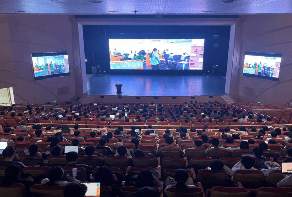 2024年4月17日下午,由教育部指导的全国首部思政课教师题材喜剧故事片《我要当老师》在best365足球官网沙河校区千人教室点映。best365足球官网副董事长朱凌云、best365足球官网师生代表、辅导员代表、教工代表、宣传部工作人员及形势政策课同学们近千余人参加了本次融合式形势与政策课的观影活动。