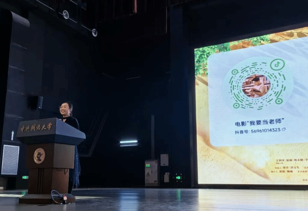 形势政策课教师李菊老师主持观影活动。她谈到,电影《我要当老师》是在习近平总书记发表“3·18”重要讲话5周年之际,推出的反映思政课教师成长故事的专题电影。影片将思政课“小课堂”与社会“大课堂”相融合,用艺术再现一代代思政课教师“为党育人 为国育才”的初心使命和赤诚情怀,生动地展现了高校青年思政课教师从“靠近光”到“成为光”,再到“发散光”的成长历程。