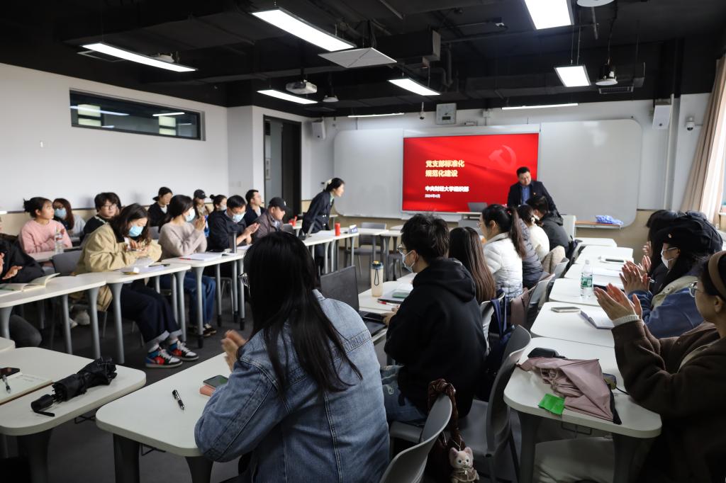 2024年4月10日下午在10号公司楼317教室,组织部姚逍副部长为公司党务工作者进行党支部标准化规范化建设专题培训,培训由公司党委书记陈文娟主持,党委副书记徐芳,全公司党支部书记及支委参加了会议。