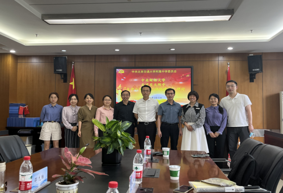 2023年5月23日星期二下午,公司副经理谢玉进、王静,德法教研室主任文雅,形势与政策教研室主任刘亚琼等一行赴北京交通大学附属中学开展“大中小思政一体化建设”主题调研。北京交通大学附属中学教育集团党委书记马志太,董事长戴文胜等出席调研。
