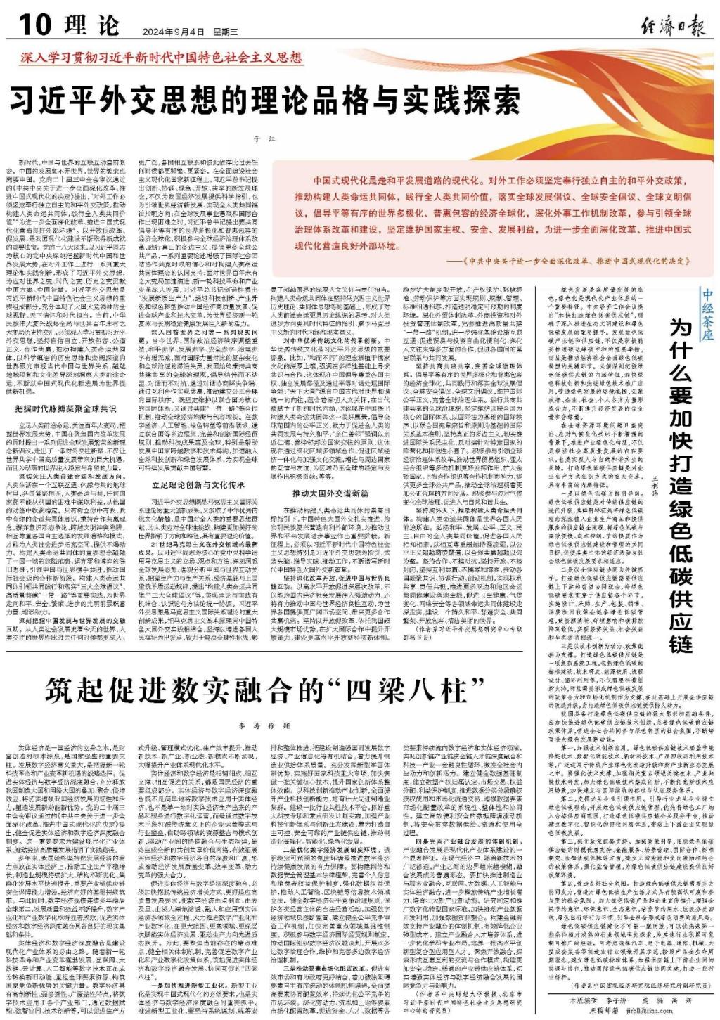 9月4日,《经济日报》理论版刊发北京市习近平新时代中国特色社会主义思想研究中心特约研究员、best365足球官网李涛教授和徐翔教授的署名文章《筑起促进数实融合的“四梁八柱”》。