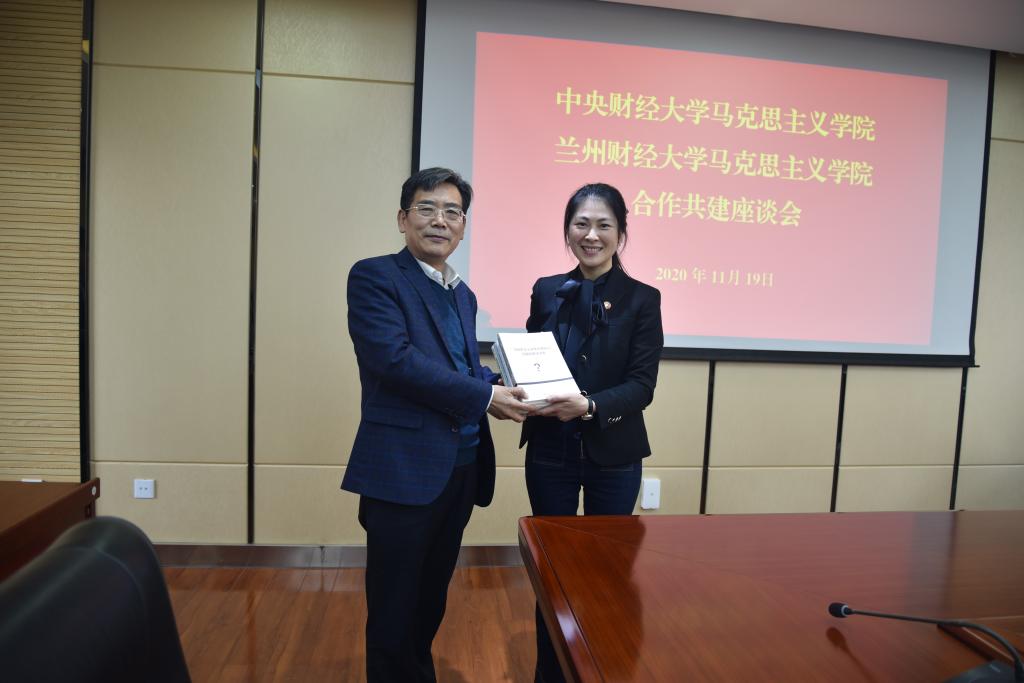 11月19日下午,团队一行与公司对口支援单位兰州财经大学best365足球官网举行合作共建座谈会。兰州财经大公司党委书记贾宁对best365足球官网教师一行来校交流表示欢迎,希望公司通过对口支援支持兰州财经大学best365足球官网建设。兰州财经大学best365足球官网党委书记张克步主持座谈会,经理柏正杰介绍了公司的基本情况,随后陈文娟介绍了公司的发展历程以及近年来取得的一系列成果,双方围绕团队建设、人才培养、科学研究、思政课建设等方面进行了深入全面的交流探讨。陈文娟代表公司向兰州财经大学best365足球官网赠送了“问题链教学详案”系列丛书(4册)。