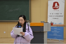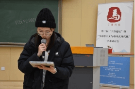 在大会交流环节,任新洋、赵倩、李如希、梁天美四位同学作为分论坛代表向全体同学分享了各分论坛的研讨情况,对分论坛同学们的发言进行了详细的介绍。